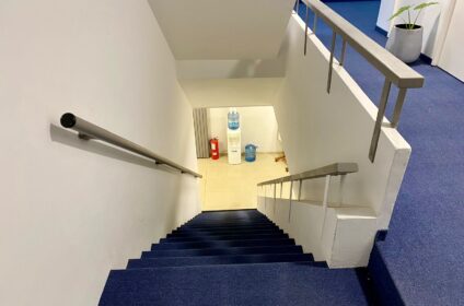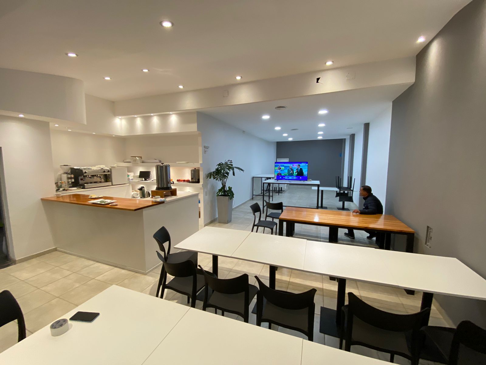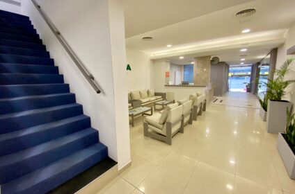 hotel, salas de reuniones y cafetería.