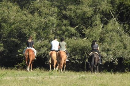 En la Reserva Natural Privada del Establecimiento San Rafael podés alojarte en la cabaña “El Descanso”, para vivir nuevas experiencias sintiendo la naturaleza y disfrutar en familia o con amigos. La cabaña tiene una capacidad para 8 personas. Cuenta con 2 habitaciones, una matrimonial King, la otra con 4 camas simples y 1 diván cama doble en el comedor. El corazón de la cabaña, su cocina-comedor, es el lugar perfecto para pasar un tiempo mientras anochece o amanece en familia o con amigos. La cabaña cuenta con una bonita cocina americana, de salón abierto. Tiene un servicio de desayuno típico de campo de bienvenida antes de iniciar con las distintas actividades rurales que podrás disfrutar en tu estadía. Así, experimentarás el típico trabajo de campo argentino, desde arriar la hacienda y esquilar las ovejas, como realizar actividades que involucran el contacto con los animales de granja, trabajos en la huerta y en el apiario. Además, se ofrece senderismo y la observación de aves y flora. También podrás disfrutar un paseo en carro safari por los senderos de la reserva natural, recrearte a través de una eco cabalgata con guías y recorrer el río Tragadero en kayak o canobote. En el casco de la estancia podrás relajarte y deleitarte en la piscina de la naturaleza. Como actividad premium se cuentan con clases de monta tanto de manera individual o por grupo. Otro servicio es del Turismo de Reuniones, para ello se tiene un Salón de Uso Múltiples (SUM) equipado con sonido y WiFi para realizar distintas actividades como ser jornadas, talleres, presentaciones y reuniones empresariales.