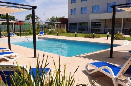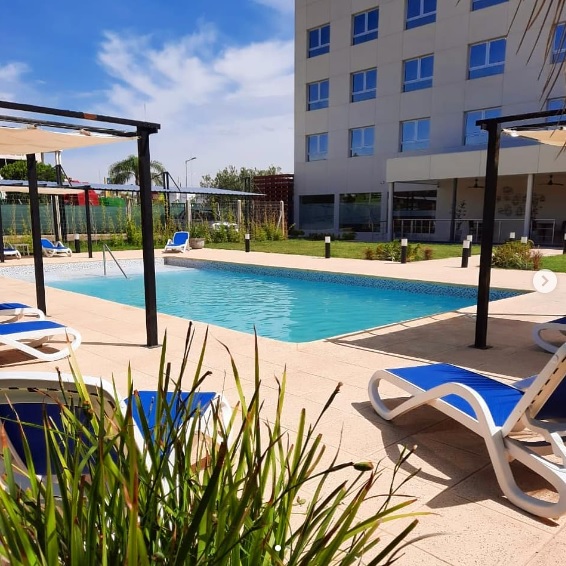 Complejo hotelero de 4 estrellas superior, ubicado en el acceso principal de la ciudad de Charata, Chaco. Contamos con 2.244m2 repartidos en cuatro niveles; con 40 habitaciones de diferentes tipologías en los tres niveles superiores, dejando la planta baja de acceso para el gran lobby, restó y sector de spa, gimnasio, sauna y masajes. El en centro del predio una elegante piscina completa la propuesta de amenities, con un solárium, servicio de bar y un parque autóctono, único con vegetación original que muestra la riqueza del chaco en todo su esplendor. Todas las habitaciones se encuentran equipadas con amueblamiento de diseño exclusivo, caja de seguridad, aire acondicionado, frigo bar, wi fi, lcd de 32”, señal de cable y telefonía. Entre los servicios que brinda el Hotel se destaca: un completo y elegante restaurante, gimnasio cardiovascular, sauna húmeda, sala de masajes y cocheras.