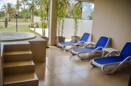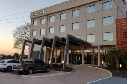Es un complejo hotelero de 4 estrellas superior, ubicado en un sector histórico y con un fuerte arraigo en la ciudad de Villa Ángela, Chaco. Cuenta con 2.244m2 repartidos en cuatro niveles; con 40 habitaciones de diferentes tipologías en los tres niveles superiores, dejando la planta baja de acceso para el gran lobby, resto y sector de spa, gimnasio, sauna y masajes. En el centro del predio una elegante piscina completa la propuesta de amenities, con un solarium, servicio de bar y un parque autóctono, único con vegetación original que muestra la riqueza del Chaco en todo su esplendor. Todas las habitaciones se encuentran equipadas con amueblamiento de diseño exclusivo, caja de seguridad, aire acondicionado, frigobar, WiFi, lcd de 32”, señal de cable y telefonía. Entre los servicios que brinda el Hotel se destaca: un completo y elegante restaurante, gimnasio cardiovascular, sauna húmedo, sala de masajes y cocheras.