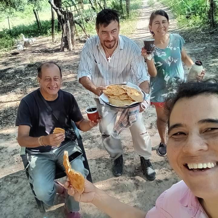 O de una tarde para compartir de unos mates con tortas fritas, pan casero y otros.